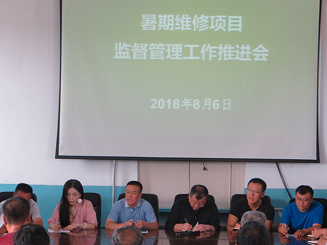 8月6日上午,后勤管理处组织召开了暑期维修项目监督管理工作推进会。学校财务处、审计处、国有资产管理处、纪检监督处、后勤管理处等职能部门以及使用单位的领导、项目负责人、施工单位的负责人参加了会议。会议要求,施工单位、使用单位与项目监管组要加强交流沟通,相互支持配合,确保暑期维修项目保质保量、顺利圆满完成。