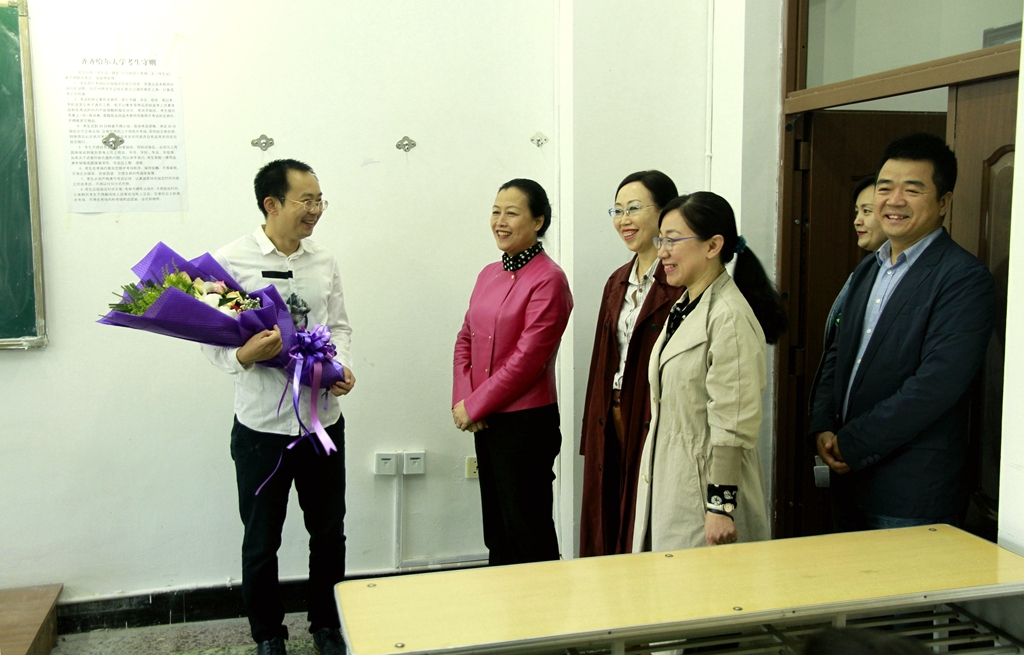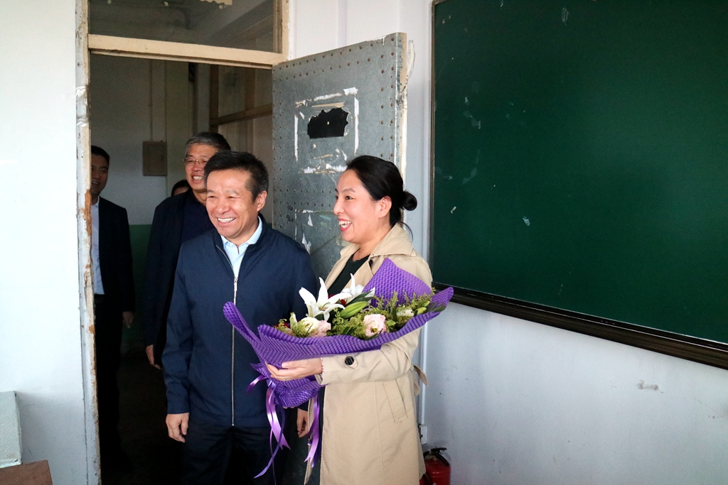 7:50分,校领导分别来到中区、东区和西区的教室,为正在准备上课的8位教师代表送上鲜花并祝他们节日快乐!校党委书记兰景力希望全校广大教师要深入贯彻习近平总书记5月2日在视察北京大学时发表的重要讲话精神,牢记总书记的嘱托和希望,要爱惜这份职业,严格要求自己,不断完善自己,执着于教书育人,把培养社会主义建设者和接班人作为根本任务;校长陈桂芝代表学校感谢全校教职员工为学生成才和学校发展做出的突出贡献,并号召大家要进一步认真学习新时代全国高等学校本科教育工作会议精神,坚持“以本为本”,回归常识、回归本分、回归初心、回归梦想,潜心教书育人,做党和人民满意的好老师。
