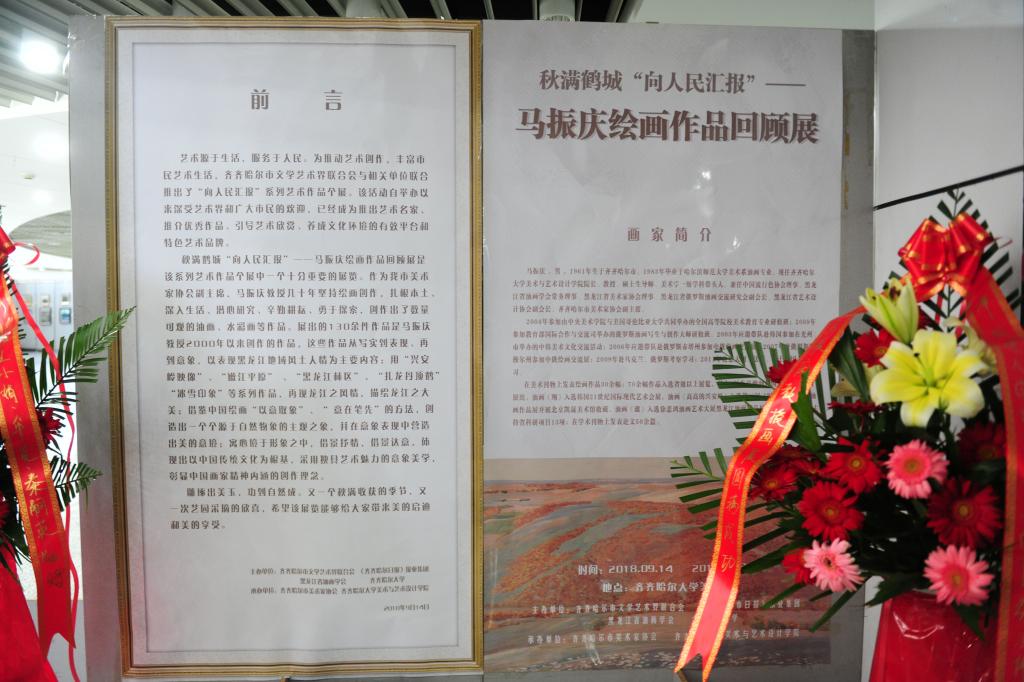 9月14日上午,由齐齐哈尔市文学艺术界联合会、《齐齐哈尔日报》报业集团、黑龙江省油画学会、beats365唯一官方网站共同主办,齐齐哈尔市美术家协会、beats365唯一官方网站美术与设计学院承办的秋满鹤城“向人民汇报” 马振庆绘画作品回顾展在beats365唯一官方网站美术馆开幕。
