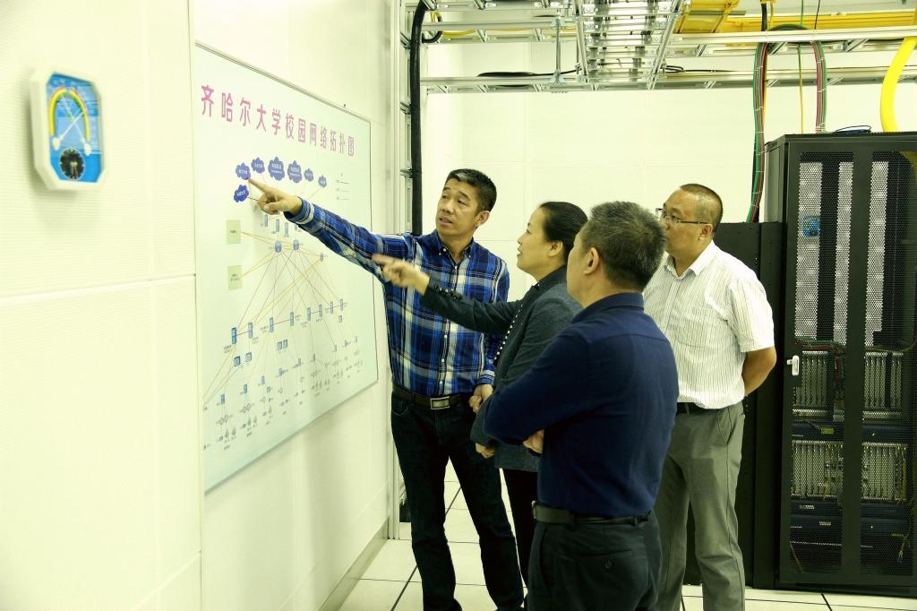 陈桂芝一行先后走访了beats365网络信息中心运行部、一卡通部、语言实验室、远程会议室、网络多媒体教室、校园网核心机房、数据机房等网络安全维护重点部门和场所,并与工作人员进行了交流。