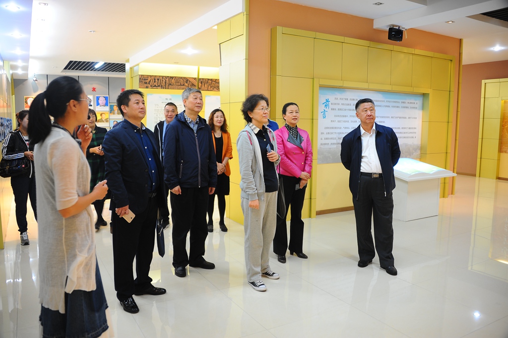 马立群一行在校长陈桂芝、党委副书记齐宏伟、副校长吕厚均的陪同下,先后来到校史馆、学生文体活动中心参观。