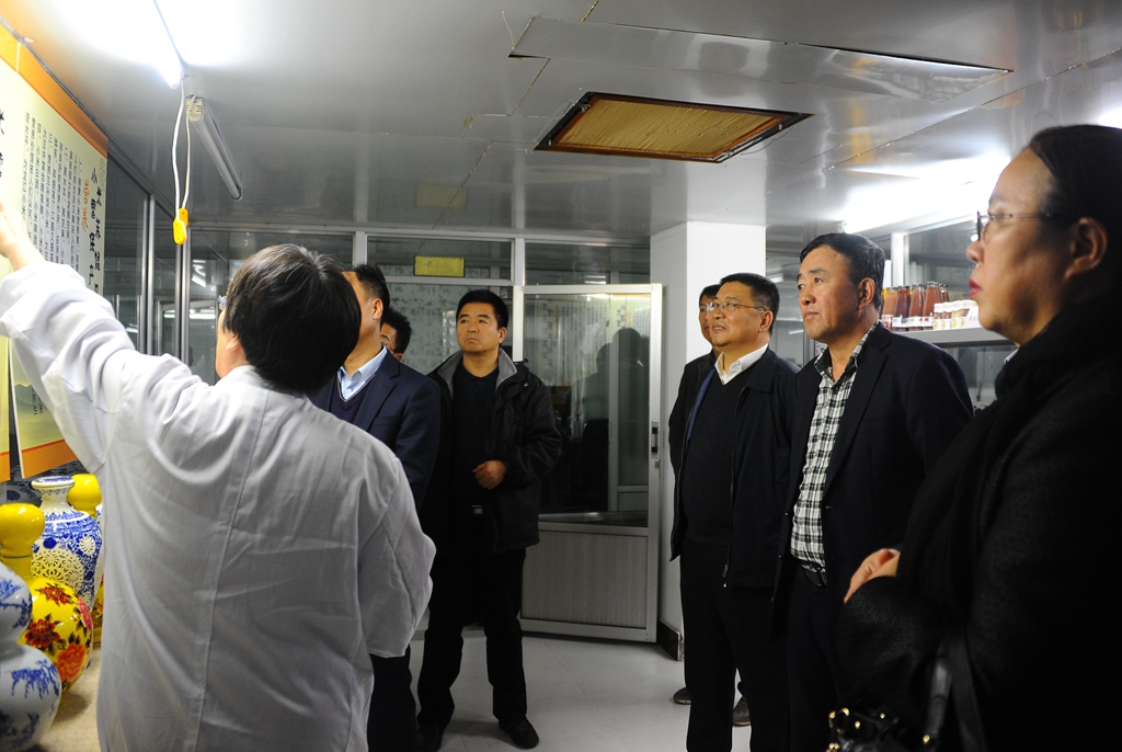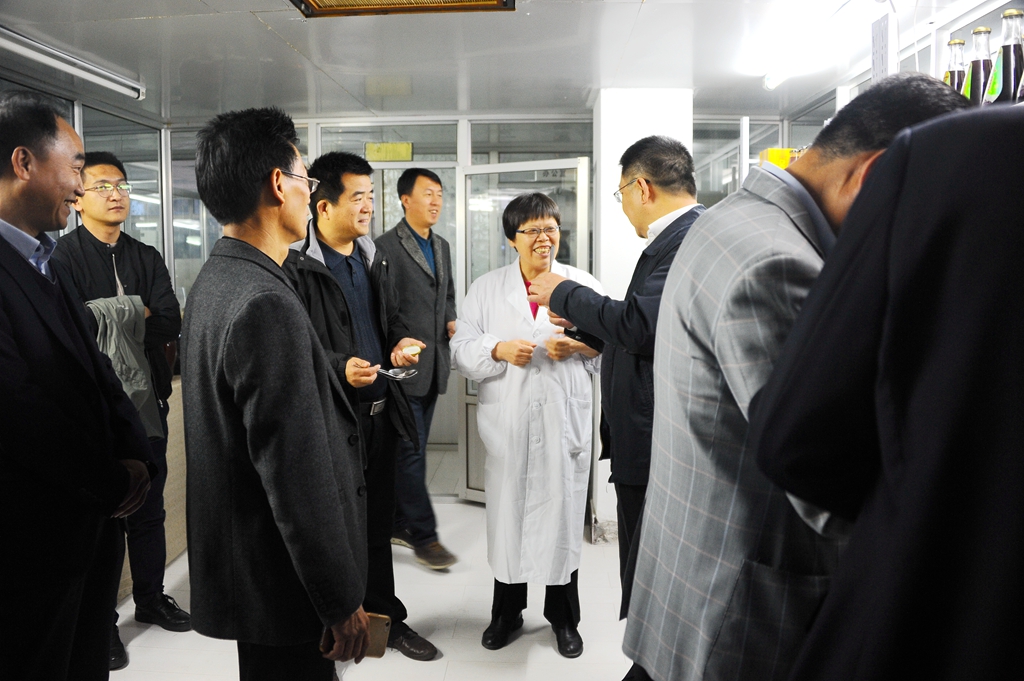 在省果蔬杂粮饮品工程技术研究中心,食品与生物工程学院副院长郭成宇向李海红一行介绍了研发中心的科研开发情况、主要研发产品以及成果转化情况。