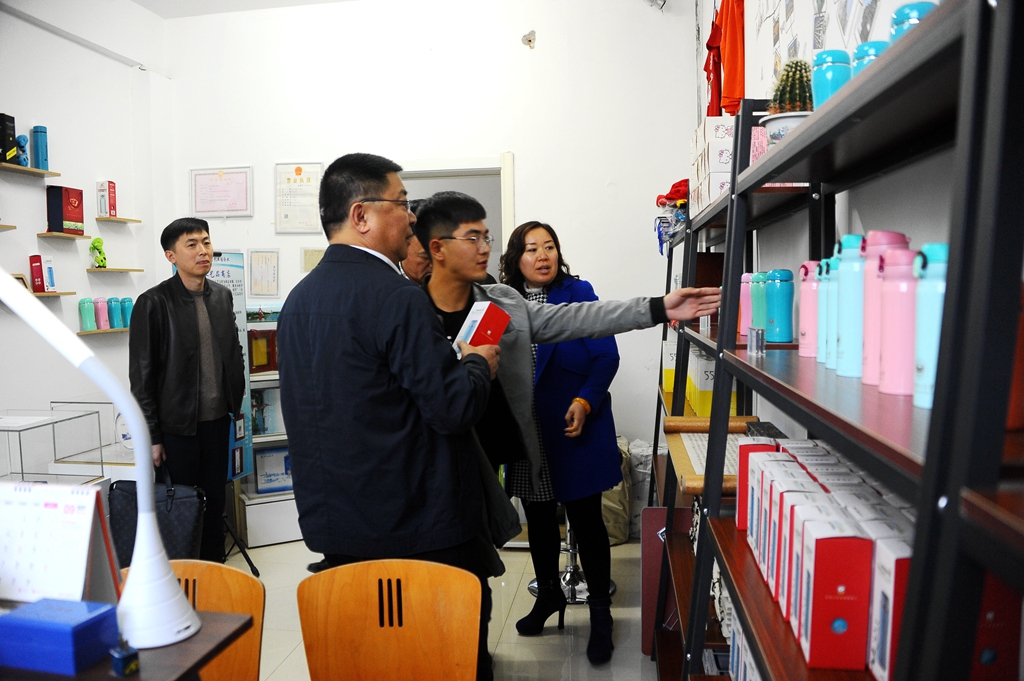 李海红一行来到了大学生创业园,先后参观了翔龙三维科技公司、一一农牧网络科技有限公司、草木染印染设计工作室、建华区一字不二捺创意文化工作室和盖瑞杰创客咖啡等大学生创新创业项目,与各创业项目团队的同学们进行了交流,询问大家所学专业,创业思路、想法,创业历程以及现在运营的实际情况。