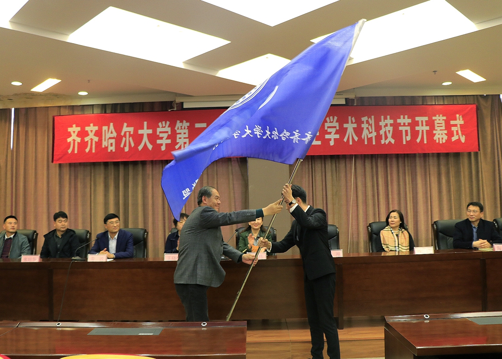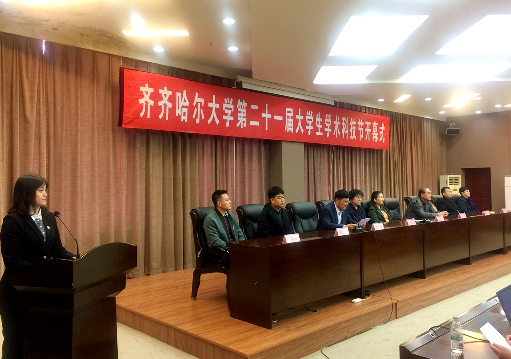 第十一届“挑战杯”黑龙江省大学生创业大赛金奖、第四届黑龙江省“互联网+”大学生创业大赛银奖获得者、材料科学与工程学院的梁术同学作为学生代表在开幕式上发言。她倡议同学们要充分利用科技节和现有的创新创业实践平台,怀揣着对科研的热爱,对创业成功的梦想,发愤图强,积极投身创新创业实践,为实现学子梦、齐大梦、中国梦贡献自己的青春力量。