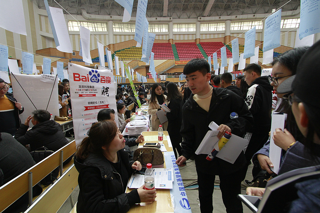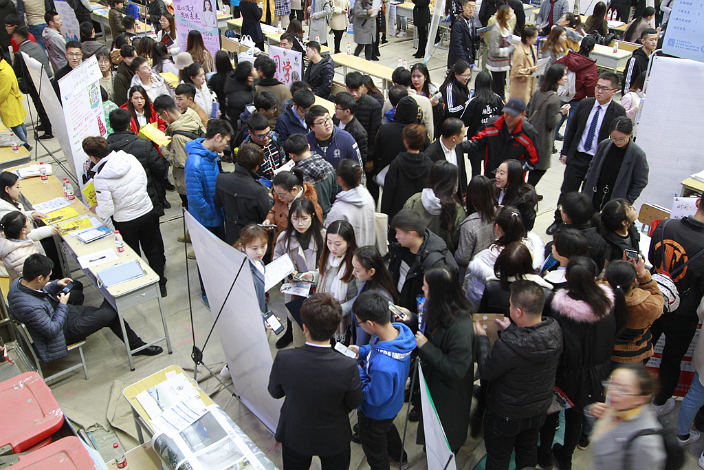11月4日上午,齐大体育馆人头攒动热闹非凡,2019届毕业生秋季供需见面会正在这里举行。
