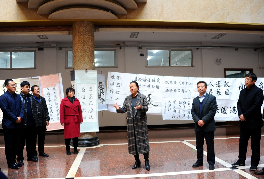 在参观过程中,陈桂芝对本次展览的举办和同学们的作品给予高度评价和充分肯定。她指出,今年是改革开放40周年,这次活动的举办既紧扣主题,又很“接地气”,通过艺术作品展的形式展现出同学们学习思想政治理论课的效果。这次展览既是马克思主义学院开展思想政治理论课教学改革的一次重要探索,也是学校认真贯彻落实全国全省高校思想政治工作会议精神的一项举措,有利于调动起广大学生学习的积极性、主动性和创造性。我们要运用好思想政治理论课教学这个主渠道,继续围绕立德树人这一主线,不断推进思想政治理论课实践教学改革,提升思想政治理论课的亲和力和针对性,在教学实践中不断满足学生成长发展的新需求和新期待,为祖国培养出德智体美劳全面发展的社会主义建设者和接班人。