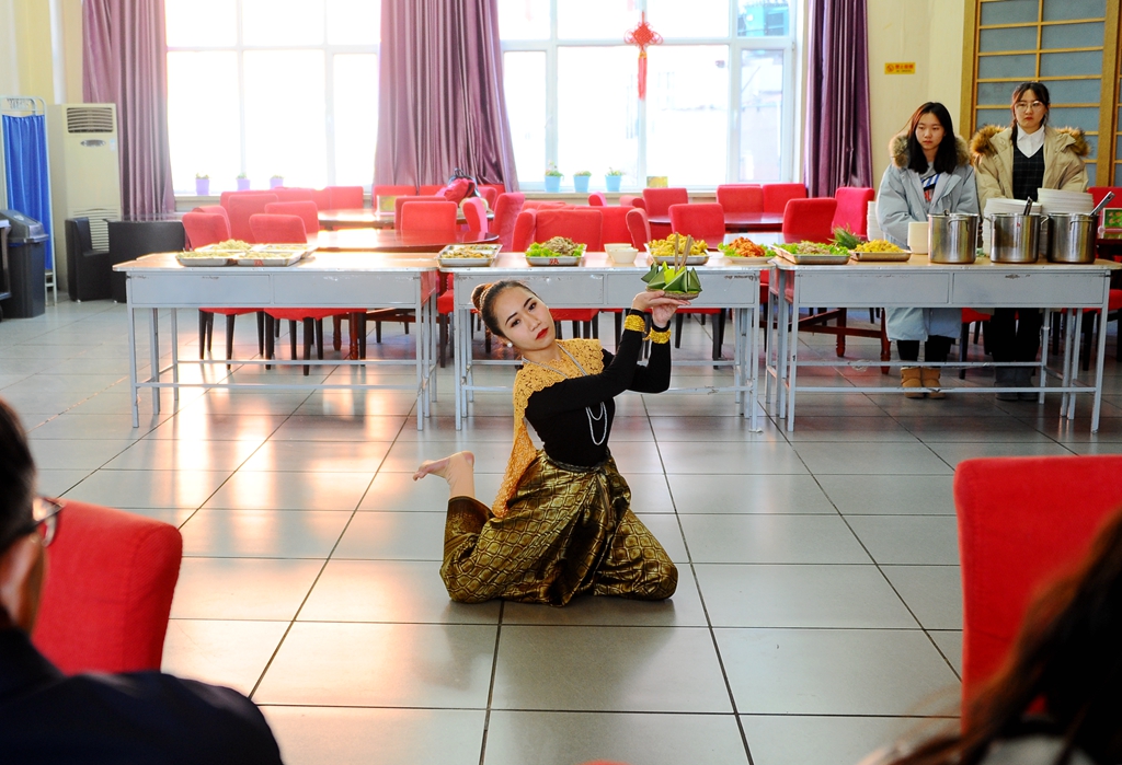 活动中,泰国学生们跳起了传统水灯节舞,韩国留学生徐正贤唱起了韩国民歌《阿里郎》,来自南美巴西的小伙子道格拉斯弹起尤克里里唱起巴西风情的歌曲《浪花》。蒙古留学生演唱的蒙古歌曲《乌兰巴托的夜》,唱出了蒙古草原夜色的寂静,苍凉悠远,赢得了观众们的阵阵掌声。