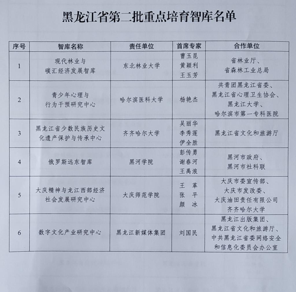 为深入贯彻落实中共中央办公厅、国务院办公厅《关于加强中国特色新型智库建设的意见》和黑龙江省委省政府《关于加强黑龙江新型智库建设的实施意见》精神,进一步培育壮大我省新型智库建设体系,更好的发挥智库决策咨询作用,加快推进黑龙江省新型智库建设,黑龙江省哲学社会科学规划办公室按照《关于组织申报黑龙江省第二批重点培育智库的通知》要求,组织开展了黑龙江省第二批重点智库培育申报遴选工作,经过摸底调研、专家评审、会议答辩,报领导批准,决定在全省设立6家重点培育智库。beats365组织申报的“黑龙江省少数民族历史文化遗产保护与传承研究中心”成功入选。