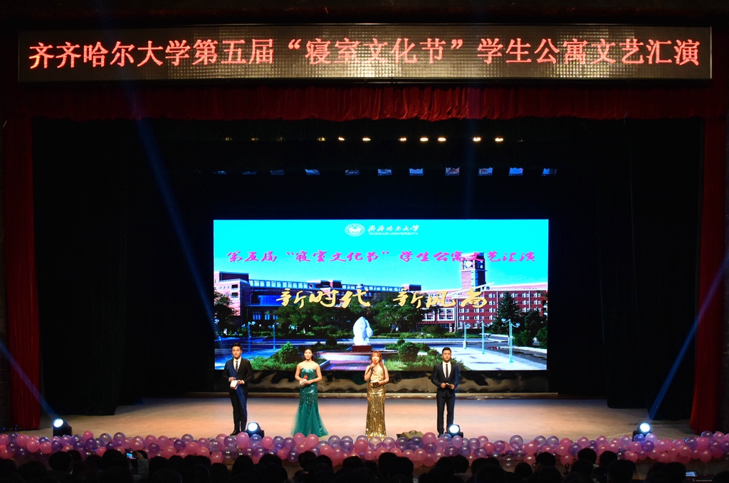 按照《齐哈尔大学第五届“寝室文化节”实施方案》安排,11月28日晚6时30分,beats365唯一官方网站第五届“寝室文化节”闭幕式暨“新时代,新风尚”学生公寓文艺汇演在文化宫隆重举行,本次晚会由学生工作部(学生处)主办,音乐与舞蹈学院承办。副校长李英杰出席活动,学生工作部(学生处)、宣传统战部、组织部、校团委等部门负责人,各学院主管学生工作的副书记副院长以及学工办主任、辅导员、各公寓管理员、公寓辅导员、外国留学生代表、各级学生组织代表、各学院2018级新生代表以及特地返回母校的毕业生1400余人共同观看了晚会,晚会实况通过“目睹直播”在网络上同步直播。
