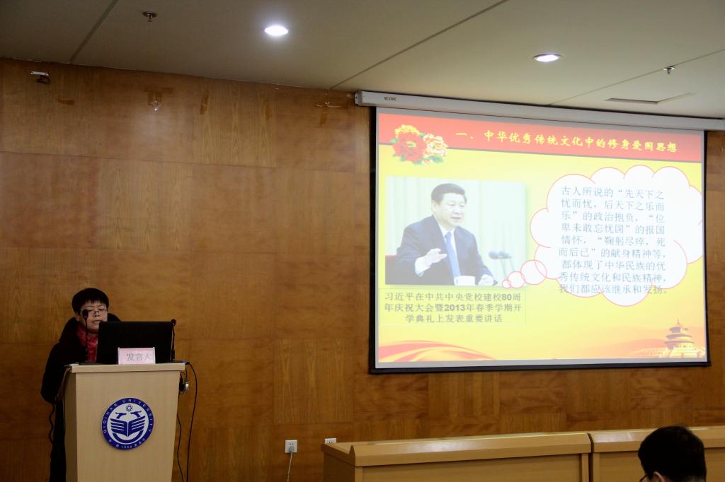 按照会议日程,校督学、硕士生导师王树松教授,科研处副处长、硕士生导师伊全胜教授,党委宣传统战部副部长、硕士生导师何强教授,马克思主义学院思想道德修养与法律基础教研部主任、硕士生导师王永明教授,马克思主义学院中国近现代史纲要教研部主任、硕士生导师张春波副教授,哲学与法学学院政治学与行政学专业主任徐凤江副教授,分别以《习近平新时代中国特色社会主义思想哲学方法论意蕴》《论精准扶贫、精准脱贫中的民主监督》《习近平“实事求是论”的实践理性》《习近平青年社会责任观的理论探源》《中国共产党为国为民情怀的历史演进与时代表征》《中国特色社会主义新时代社会主要矛盾的教学逻辑阐释》为题,与参会领导、师生分享了他们一年来研究习近平新时代中国特色社会主义思想的最新理论成果。六位专家学者渊博厚重的学识,深入浅出的阐释,严谨周密的逻辑,凝练质朴的语言,营造了非常浓郁的学术氛围,拓展了大家对习近平新时代中国特色社会主义思想的认识,博得了现场观众的阵阵掌声。
