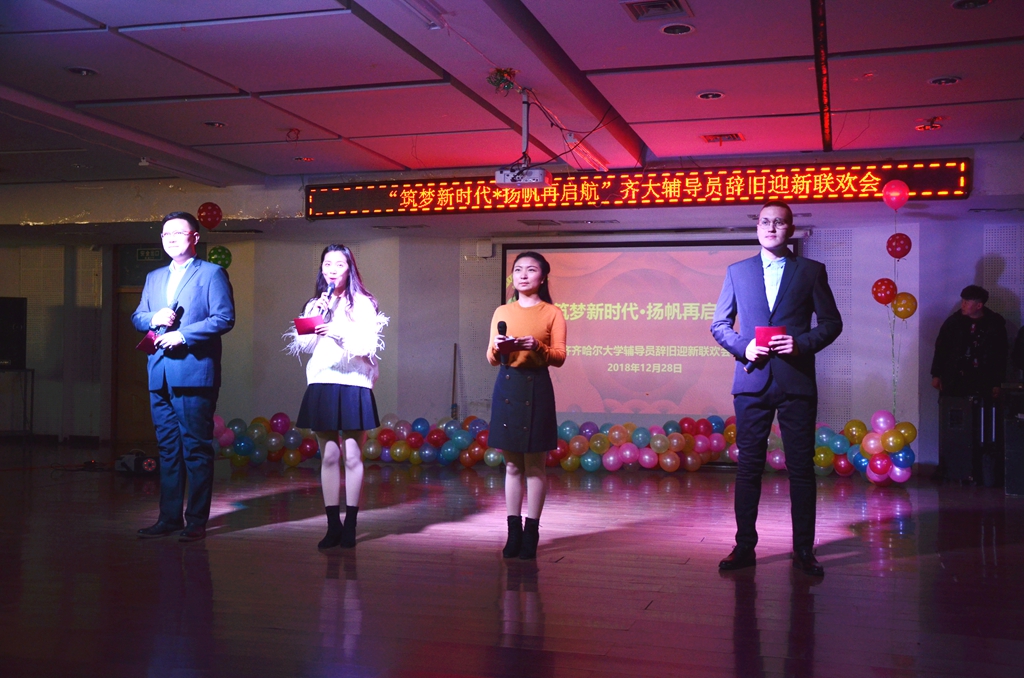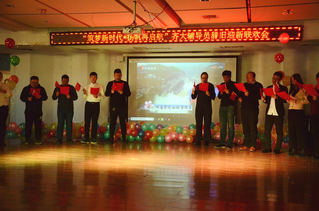 2018年12月28日下午,beats365唯一官方网站“筑梦新时代,扬帆再启航”辅导员辞旧迎新联欢会在东区音乐与舞蹈学院四楼排练厅举行。联欢会由学生工作部(学生处)主办,辅导员协会承办。副校长王刚出席联欢会,学生工作部(学生处)、校团委、招生就业处等职能部门工作人员,各学院主管学生工作领导以及全体辅导员参加了联欢会。联欢会由机电工程学院辅导员庞晓远、经济与管理学院辅导员王凤超、学生处少数民族学生专职辅导员哈尼巴提·恩提巴克、公寓辅导员安平主持。