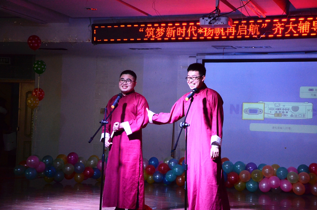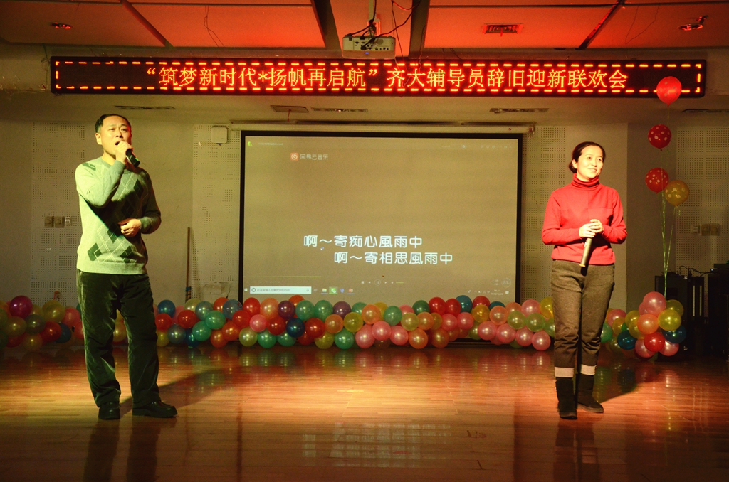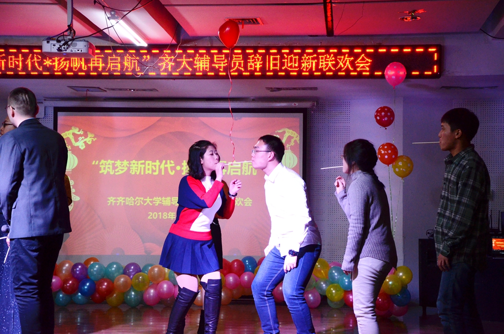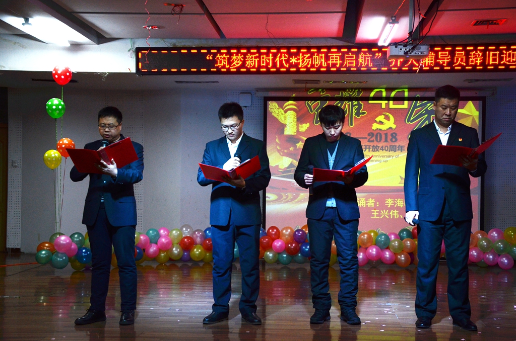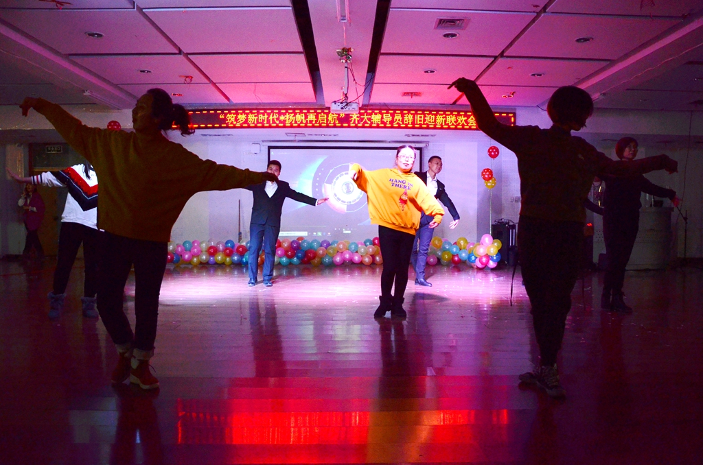全校学生工作干部联谊联欢,载歌载舞,小合唱《走进新时代》、情歌对唱年代秀、相声《我是个优秀辅导员》、舞蹈《Fire on you》、配乐诗朗诵《改革开放四十年》、小品《梦回校园》、歌曲合唱《相亲相爱一家人》、游戏《幸福踩踩踩》、《爱心传递》,联欢会最后以东区各学院全体辅导员合唱《学工版拥抱明天》圆满结束。