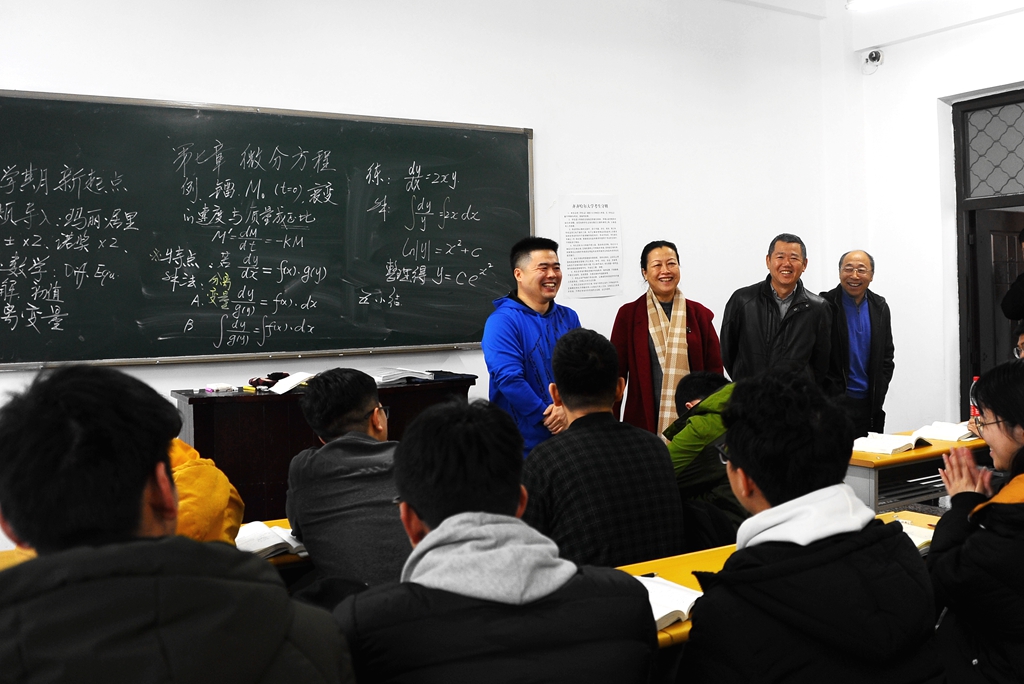 陈桂芝先后来到西区主楼202教室、439教室,随机选听了《高等数学I》和《书写技能》两门课,并在课后与两位任课教师以及同学们进行了深入交流,了解课程情况。