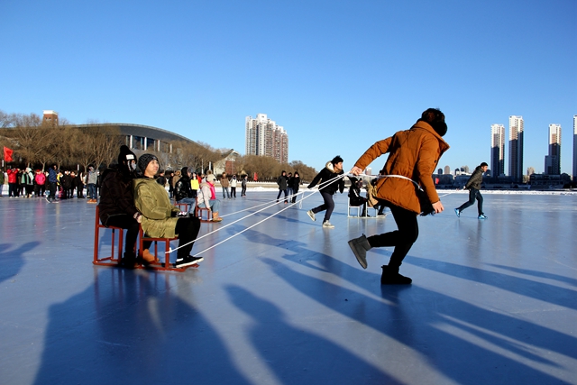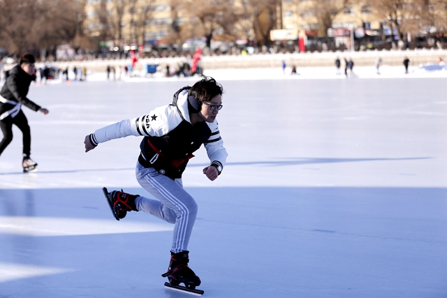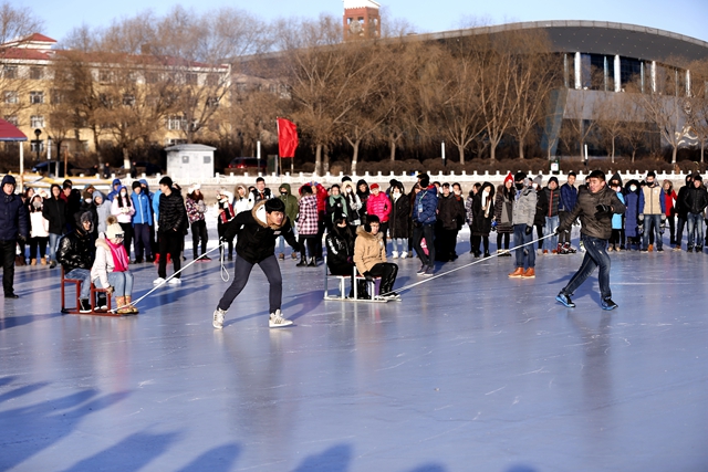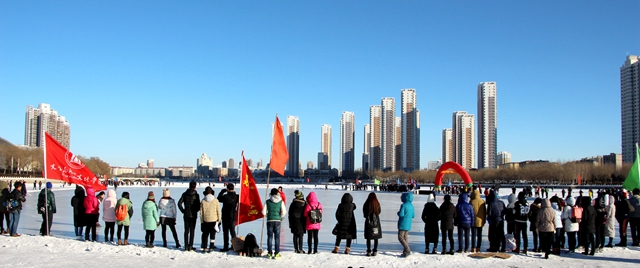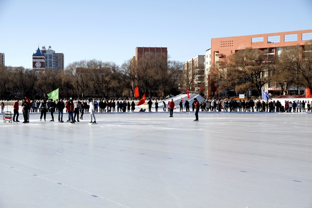 短暂的开幕式后,比赛正式开始。隆冬的劳动湖面洋溢着冰雪健儿竞技的呐喊声,涌动着大学生阳光体育运动的朝气与热情。