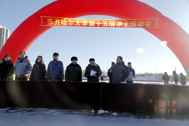 28日中午13:00,第十五届大学生冰上运动会在劳动湖冰场举行简短的开幕仪式。校党委常委、副校长李英杰致开幕词。体育学院院长姚大为主持开幕式并宣布冰上运动会开幕。体育学院领导班子成员参加了开幕式。千余名师生代表观看了比赛。