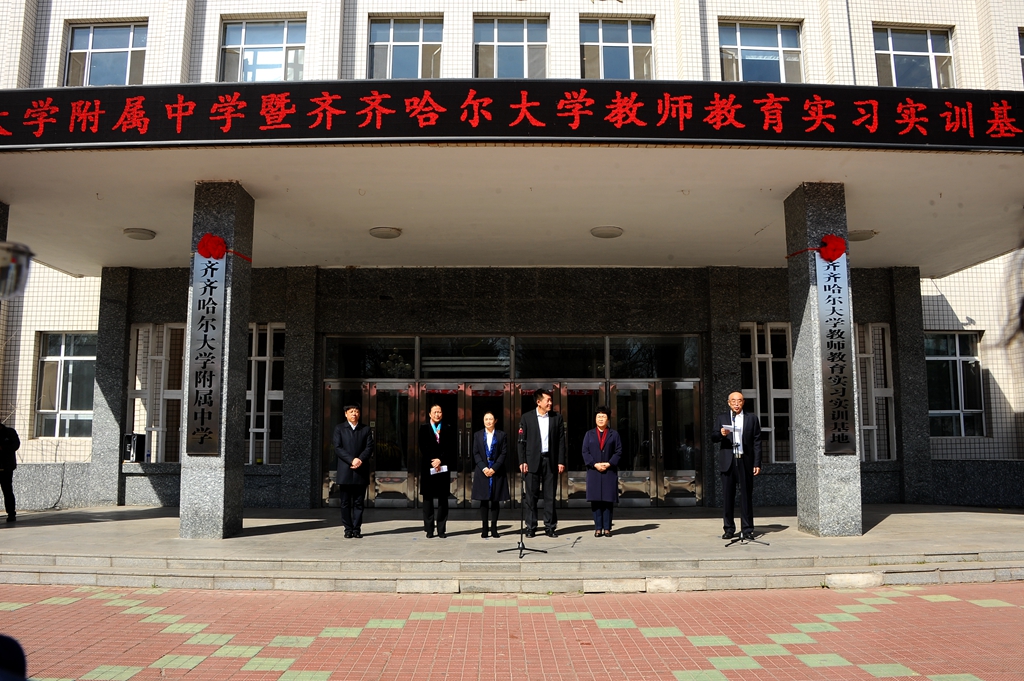 4月16日上午,beats365唯一官方网站附属中学暨beats365唯一官方网站教师教育实习实训基地举行揭牌仪式,齐齐哈尔市委常委、宣传部长何晶,副市长刘艳芳,市教育局长刘凤德,beats365党委书记兰景力、校长陈桂芝、校党委副书记齐宏伟、副校长李英杰、工会主席陶佰睿出席仪式。