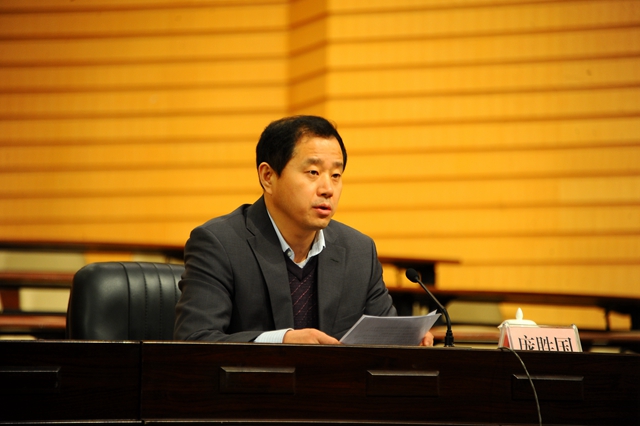 省委高校工委组织部(干部处)副部长庞胜国代表省委考核组对2015年度校级领导班子考核民主测评工作的目的、意义、程序、要求进行了说明和部署。