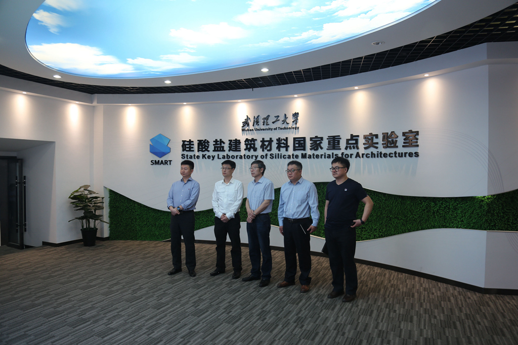 张树军一行首先来到硅酸盐建筑材料国家重点实验室进行参观走访,该实验室主任陈伟做了详细讲解。