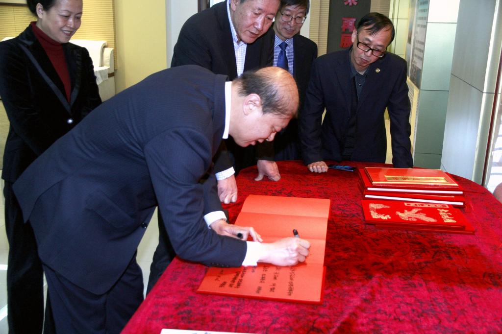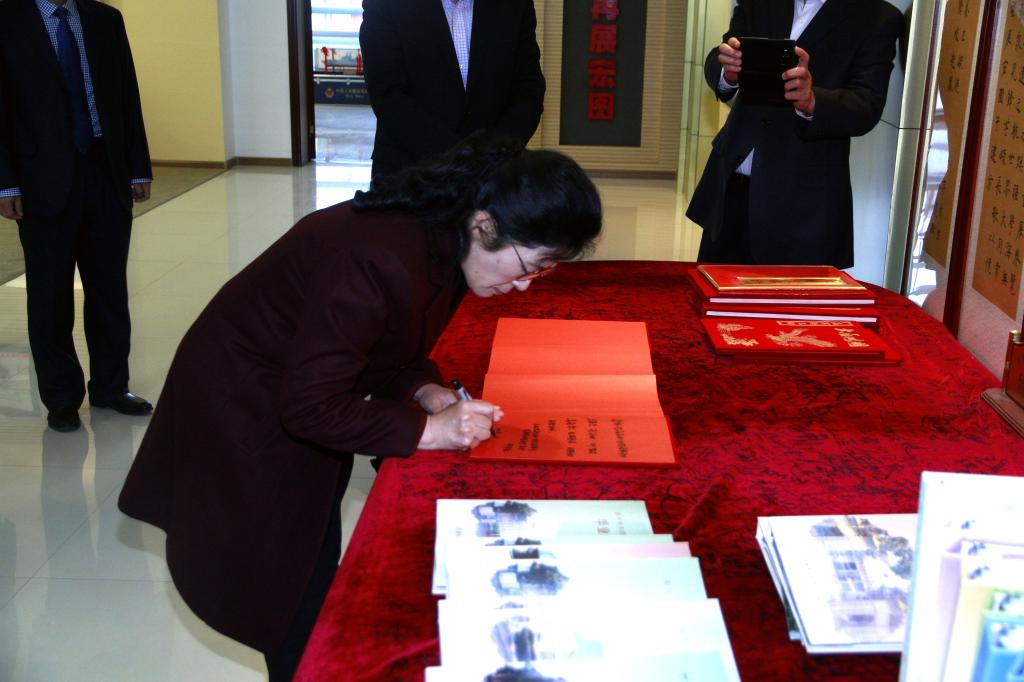 在校史馆,听过讲解员对学校六十多年办学历程的详细讲解后,辛宝忠书记与边奎顺校长对齐大人多年扎根边疆、执鞭杏坛、弘文励教、改革奋进的办学历程表示赞赏,并先后为学校题字留念。