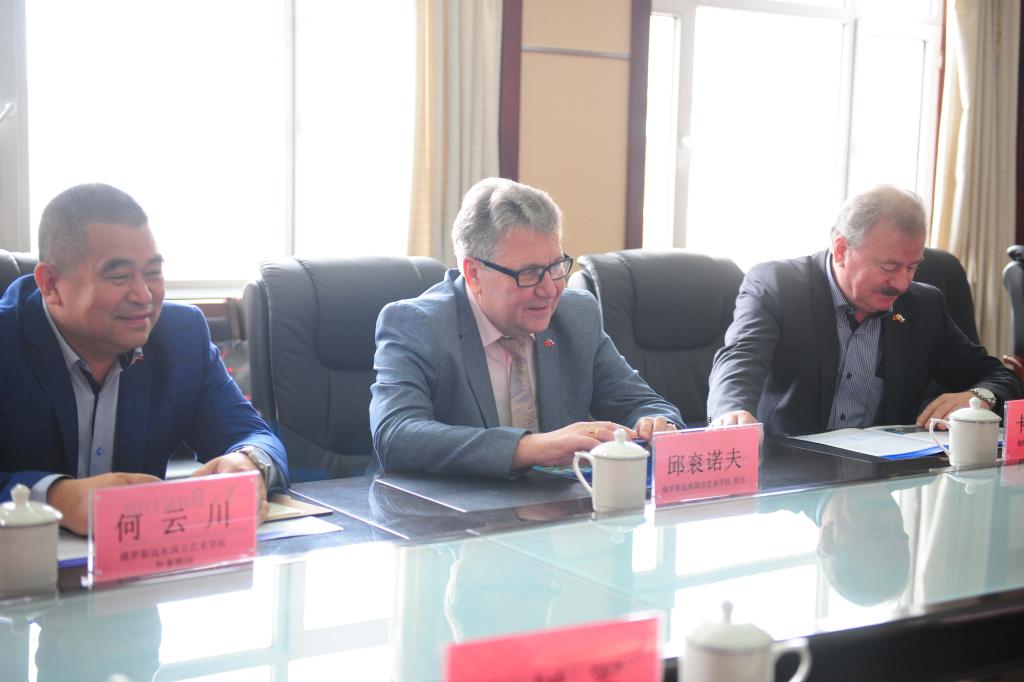 安德烈•酋谷诺夫院长对beats365唯一官方网站的热情接待表示感谢。他表示,这是第一次来到beats365唯一官方网站,非常荣幸受邀参加第十届中俄大学生文化艺术节。他从办学历史、学科设置、科研合作等方面介绍了俄罗斯远东国立艺术学院,并就本次艺术节期间的文化艺术交流活动和两校间可能展开的合作交流与beats365唯一官方网站领导交换了意见。