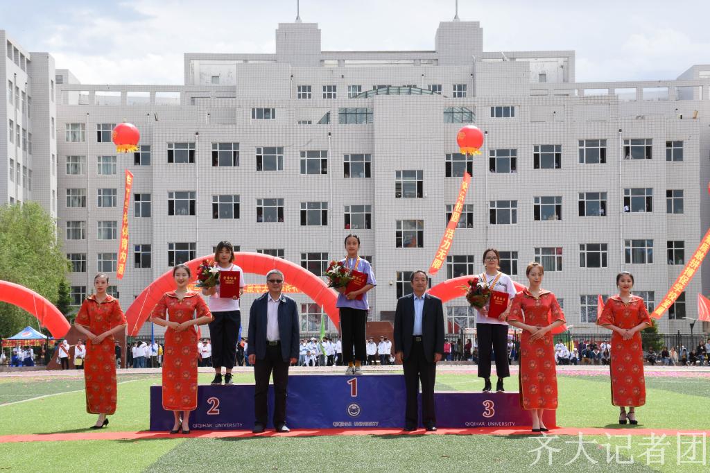 比赛正式开始前,与会校领导作为颁奖嘉宾,分别为此前举行的男子一万米、女子五千米等项目获奖者以及获得校园足球联赛前三名的学院运动员颁奖。