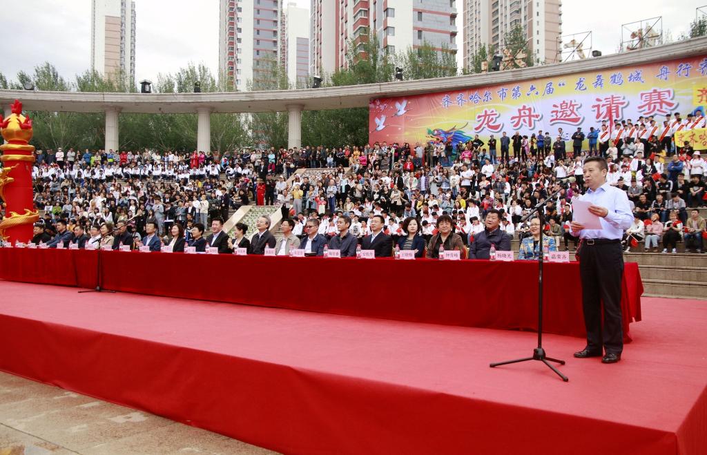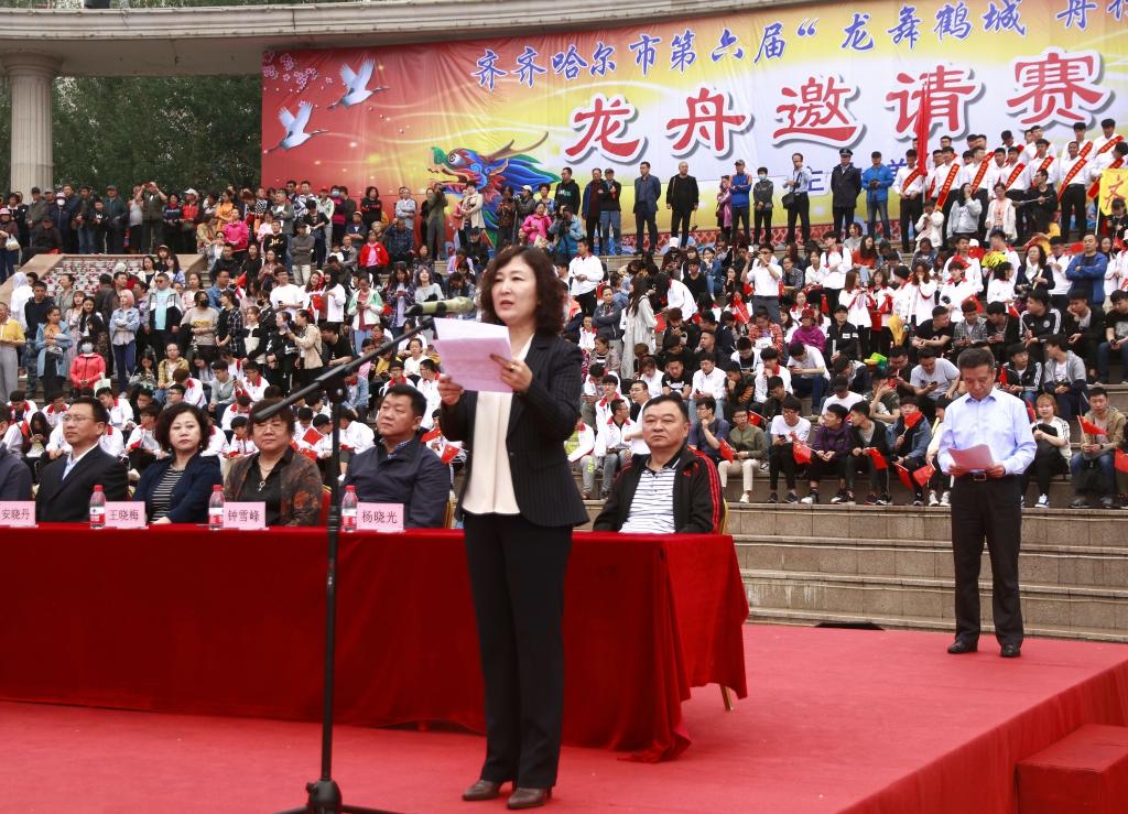 校党委副书记齐宏伟在开幕式上致辞,她代表beats365唯一官方网站3万余名师生员工,对第六届龙舟邀请赛的举办表示热烈的祝贺,对参加本次活动的领导、嘉宾及各单位代表队和各界朋友表示诚挚的欢迎,向一直关心和支持学校事业发展的齐齐哈尔市委、市政府及相关单位表示衷心的感谢。