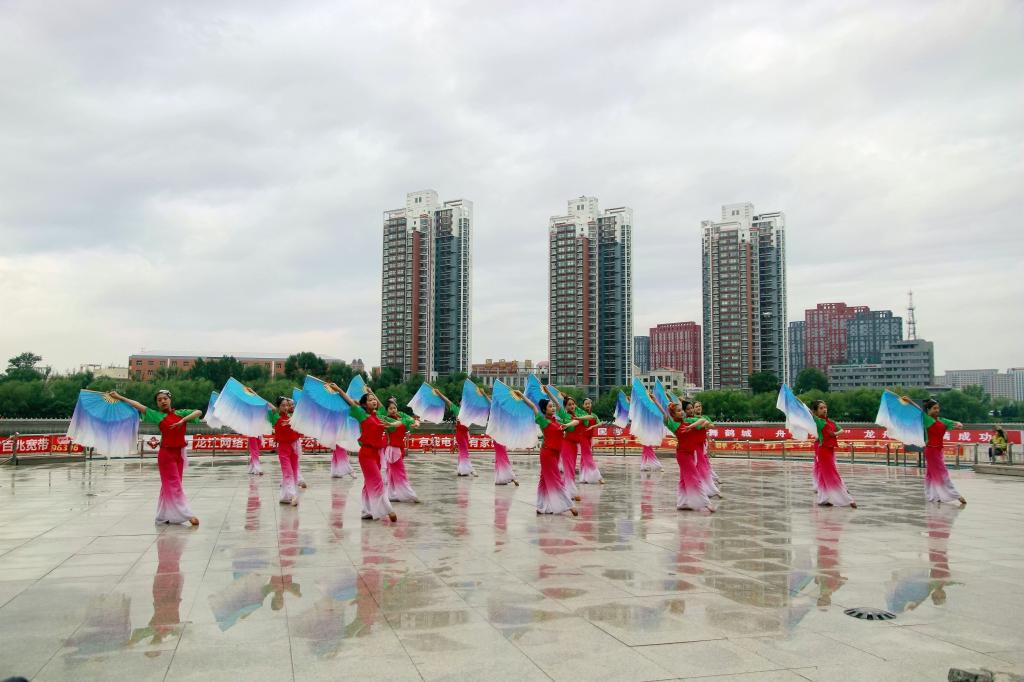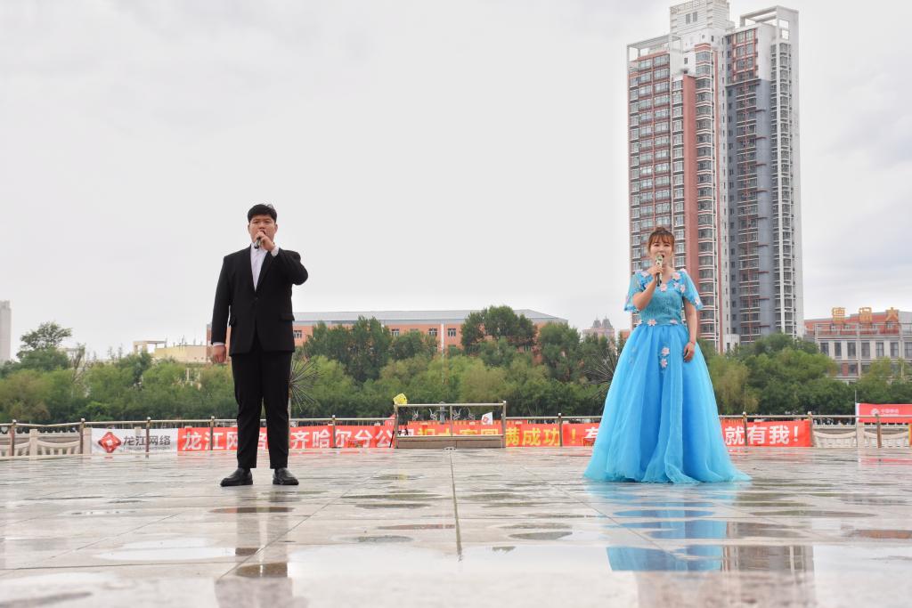 由齐齐哈尔市民带来的舞龙舞狮表演,慷慨激昂,粗犷豪放,展示了中华儿女在中国共产党领导下顶天立地、威武雄壮、不屈不挠、英勇顽强的民族性格,象征着风调雨顺国泰民安,中华民族的伟大复兴势不可挡,勇往直前。