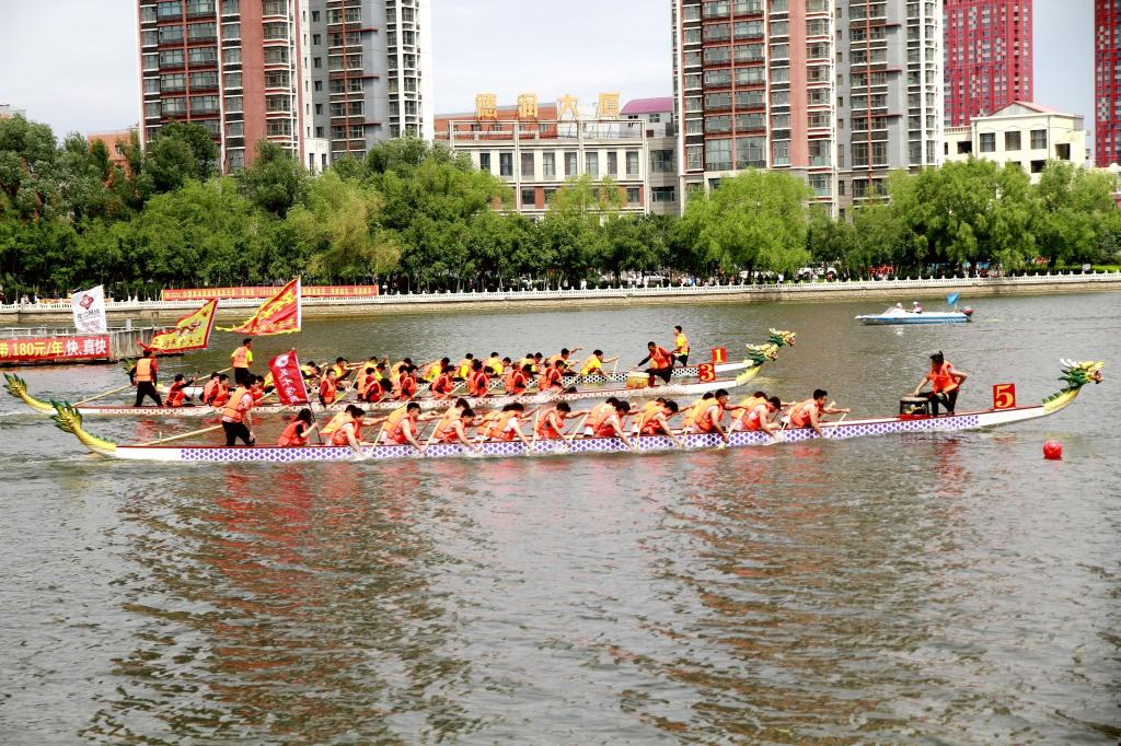 赛龙夺锦、鼓声催发健儿奋;端日弄波、浆拍浩汤舟队威。齐齐哈尔市“龙舞鹤城 舟行齐大”龙舟邀请赛已经连续举办六年,是目前齐齐哈尔地区规模最大的龙舟赛。