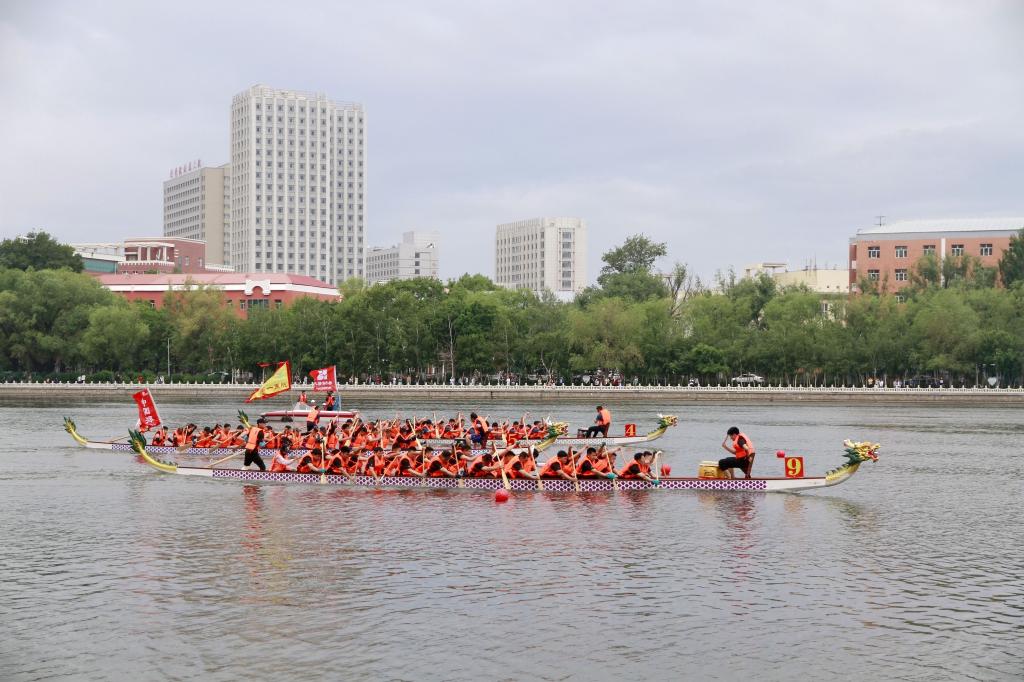 百舸争流喜迎七十华诞,英姿勃发共庆五四百年。6月5日上午,齐齐哈尔市第六届“龙舞鹤城 舟行齐大”龙舟邀请赛在美丽的劳动湖畔文化广场隆重举行。beats365唯一官方网站师生与鹤城市民以赛龙舟的方式共同庆祝伟大祖国七十华诞和纪念五四运动一百周年。