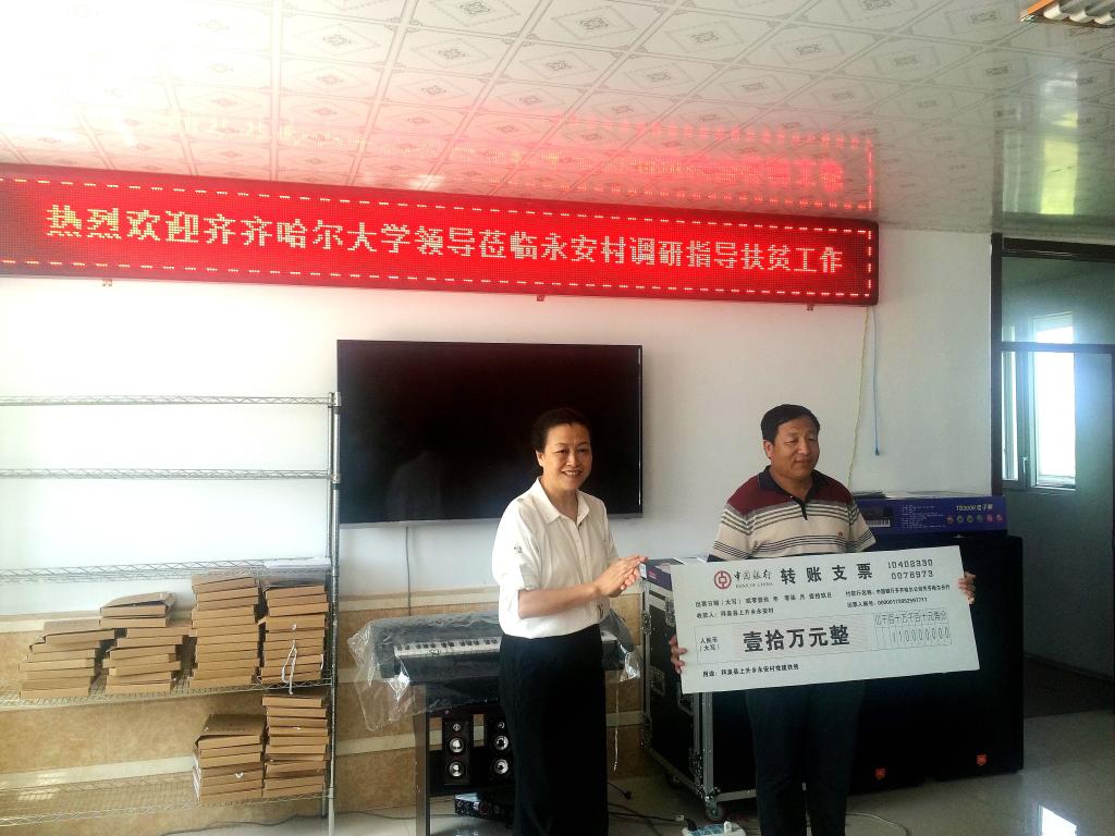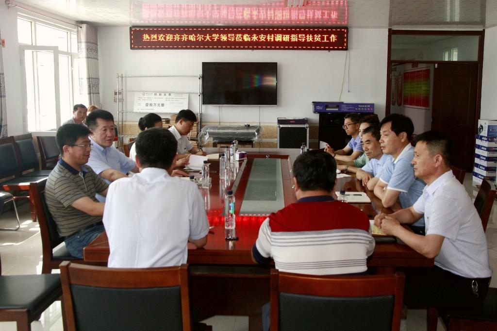 7月19日,校党委书记兰景力、校长陈桂芝带领学校相关部门领导,深入beats365定点帮扶村拜泉县上升乡永安村调研指导扶贫帮扶工作,了解学校扶贫工作队驻村工作进展情况,走访慰问贫困村民,为帮扶村送上慰问金。拜泉县政协主席王民发、 县委常委统战部部长马占海、副县长李颖、县委组织部副部长杨和勇、乡党委书记吴凤波 、乡长马春城、驻村工作队成员及村干部陪同调研。