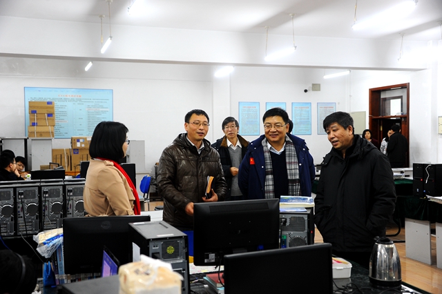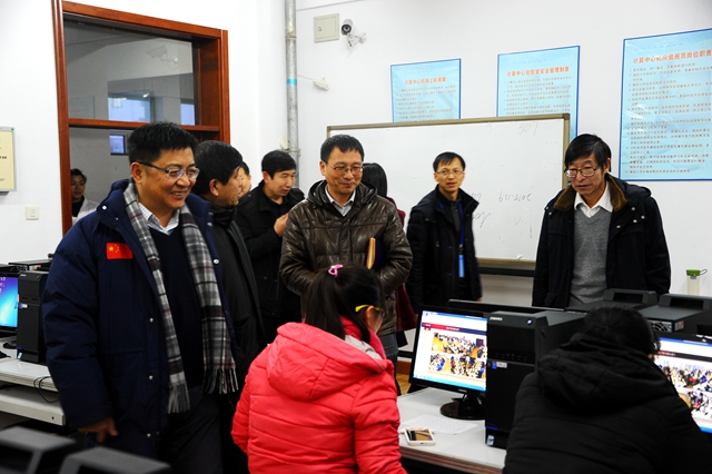 12月2日下午,校党委书记李海红,校党委常委、工会主席李敏义等在教务处处长张树军、副处长刘景军等陪同下,来到现代教育技术中心检查指导过程化考核教学改革工作。在听取了中心主任陶佰睿及相关老师的工作汇报后,校领导充分肯定了过程化考核教学改革在转变学风和培养学生诚信考试方面的积极作用,并对下一步工作给出具体的建议。