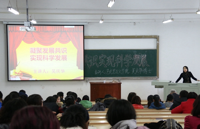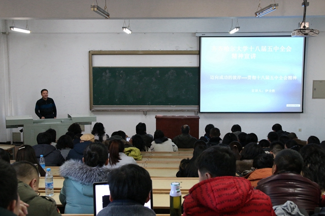 专题宣讲活动引导学习。在校党委宣传部和各基层党委(直属党支部)的共同努力下,学校组织理论专家,认真遴选专题,成立了由校党委副书记盖元臣教授亲自挂帅的“十八届五中全会精神宣讲团”。宣讲团于11月25日至12月9日,在全校范围内集中开展了面向全校各单位、各部门,覆盖全校师生,共计13场大型专题宣讲活动。其中,校党委副书记、教授、硕士生导师盖元臣主讲了《五大发展理念的历史逻辑与现实意义》;科技处处长、教授、博士、硕士生导师郑永杰主讲了《创新发展理念 推动科技创新》;食品与生物工程学院党委书记、副教授杨淳主讲了《全面建成小康社会——实现中华民族伟大复兴的第一个百年梦想》;科技处副处长、教授、博士、硕士生导师伊全胜主讲了《贯彻十八届五中全会精神 推动beats365科技创新工作持续发展》;马克思主义学院副院长、教授、硕士生导师于春梅主讲了《在扩大对外开放中寻求合作共赢》;马克思主义学院中国近现代史基本问题教研部主任、副教授、博士、硕士生导师吴庆华主讲了《凝聚发展共识 实现科学发展》。
