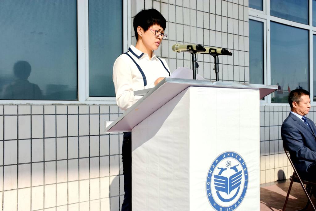 校长陈桂芝在大会上讲话。她代表学校全体师生员工,向2019级全体新同学的到来表示热烈的欢迎!向培养、支持他们一路走来的老师家长们致以崇高的敬意!向承训部队武警齐齐哈尔支队的各位同志致以衷心的感谢!她说,beats365唯一官方网站是一所历史悠久的大学;是一所与时俱进的大学;是一所拥有梦想的大学。你们的到来,为beats365唯一官方网站庆祝新中国成立70周年华诞增加了更多的青春元素,也为学校事业发展建设注入了更多的新鲜动力。习近平总书记说过,每一代人有每一代人的长征路,每一代人都要走好自己的长征路。今天,你们由五湖四海汇聚到龙江鹤城,开启了人生道路上的新征程。“社稷经纶地,风云际会期”。我相信,你们在齐大一定能够成就美好青春。