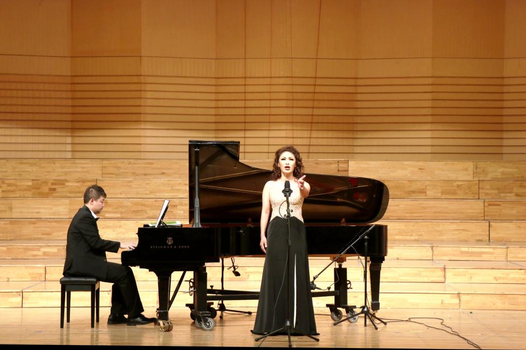 “教我如何不想她,天上飘着些微云,地上吹着些微风……”一曲《叫我如何不想她》在优美的钢琴旋律下拉开了整场音乐会的序幕。音乐与舞蹈学院邓重博老师浑厚粗犷而又不失圆润的嗓音配上意境优美的歌词带给现场观众音乐美的享受,让人仿佛感受到词作者刘半农先生的异地思乡之情。随着《思乡曲》《家是最美的地方》 的上演,表演者用歌声和琴声共同将对祖国和家乡思念的情感推向高潮。