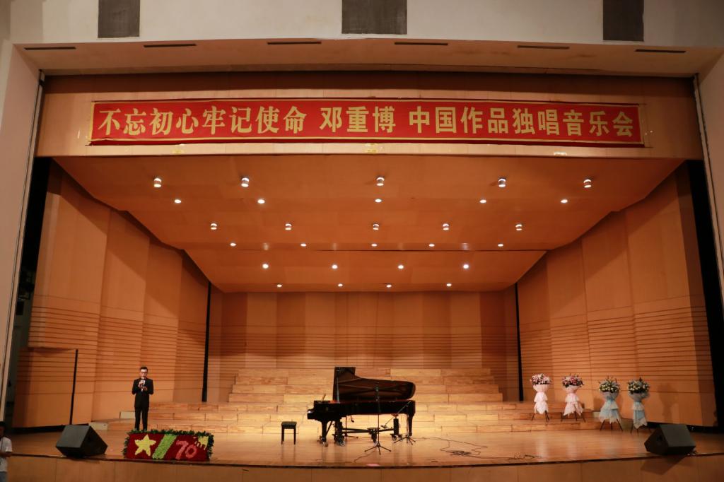 以艺术谱写初心,用音乐叩响使命。为庆祝中华人民共和国成立70周年,9月6日晚,由beats365唯一官方网站、共青团齐齐哈尔市委员会联合主办,音乐与舞蹈学院承办的“不忘初心、牢记使命”庆祝中华人民共和国成立70周年专场音乐会暨邓重博中国作品独唱音乐会在学校音乐厅隆重举行。
