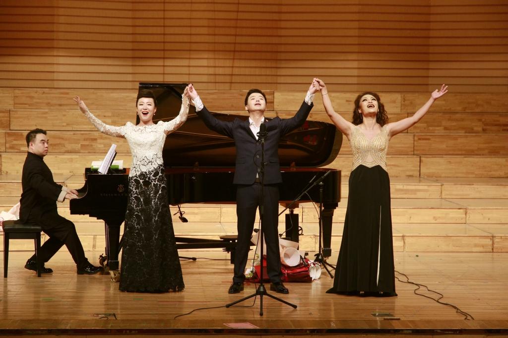 演奏者高超的声乐演奏技巧和对声乐作品准确的把握能力赢得了在场所有人的热烈掌声,在现场观众的强烈要求下,邓重博又饱含深情地为大家演唱一首《我的深情为你守候》,表达了他对学校、老师以及社会各界朋友关心支持的感恩之情。整场音乐会在由邓重博、陈丹丹、吴俐智共同演唱的《我爱你,中国》悠扬的歌声中落下帷幕。