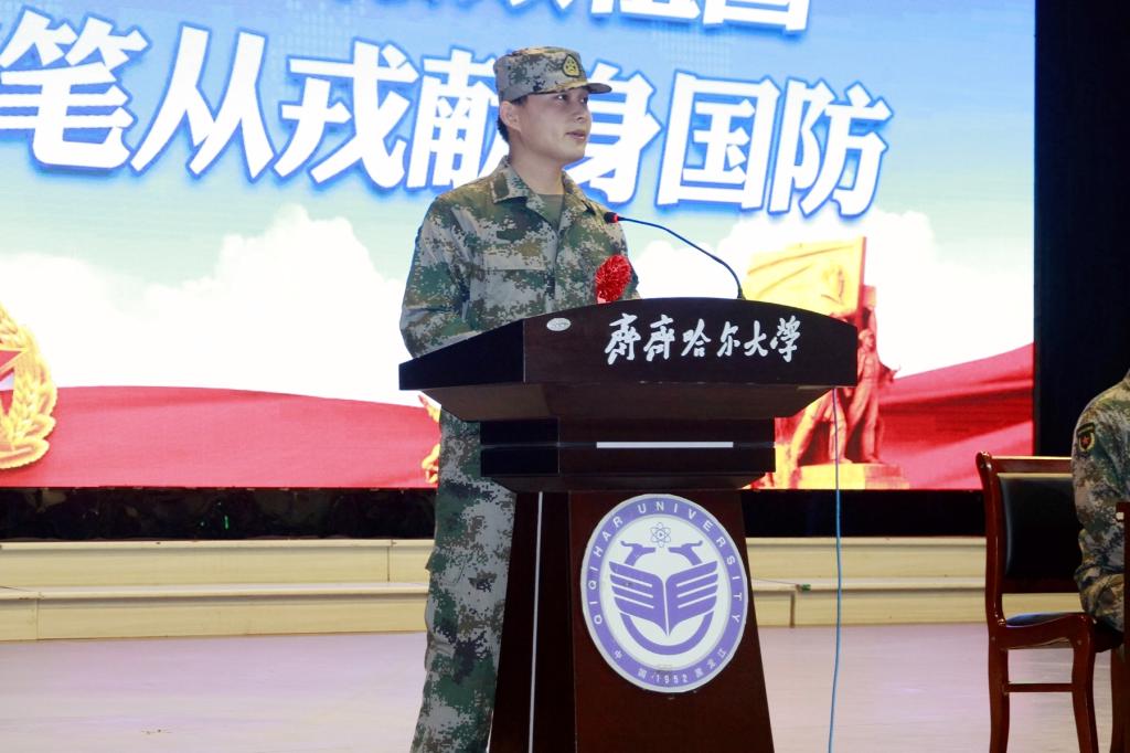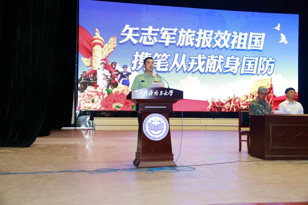 来自哲学与法学学院的应届毕业生王朗代表入伍新兵在欢送会上发言,他代表即将入伍的齐大新兵对父母的养育、母校的教育、部队的选择表示衷心感谢,并表示将会在部队大熔炉中不断磨砺、百炼成钢,绝不辜负父母师长的殷切期望,立鸿鹄志,做奋斗者,在绿色军营展现齐大学子的风采,争取早日传回佳绩,为母校增光添彩。