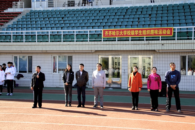 校党委副书记盖元臣做了热情洋溢的讲话。他首先向参与本次运动会的全体运动员及全体工作人员表示了衷心的祝愿和感谢,并对同学们提出几点希望:一是希望同学们要时刻树立健康第一的理念,努力做到阳光锻炼一小时,健康工作五十年,幸福生活一辈子;二是希望同学们在运动中同心协力、顽强拼搏、奋勇争先,充分展现出齐大团学骨干的团结精神、拼搏精神;三是希望同学们能赛出友谊,赛出风格,赛出成绩,赛出青年人的朝气。最后他预祝本次趣味运动会圆满成功,并宣布趣味运动会正式开始。