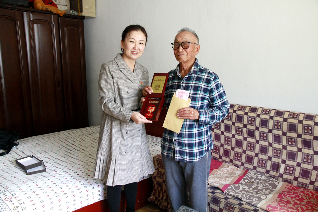 在庆祝新中国成立70周年之际,9月29日上午,校长陈桂芝、校党委副书记齐宏伟、校党委副书记张文治分别走访慰问了beats365离休老同志张秀才、任海平、陈国春,向他们致以崇高敬意和亲切慰问,并转送了由中共中央、国务院、中央军委颁发的“中华人民共和国成立70周年纪念章”,还向他们转交了一千元慰问金。