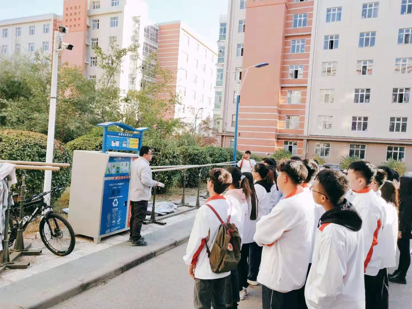 后勤管理处工作人员为现场同学介绍了beats365垃圾分类点布置及校园新型垃圾分类垃圾桶积分程序的应用。