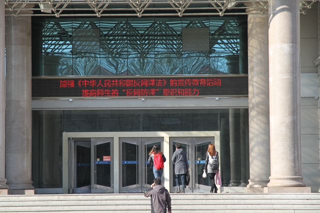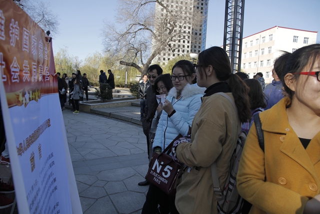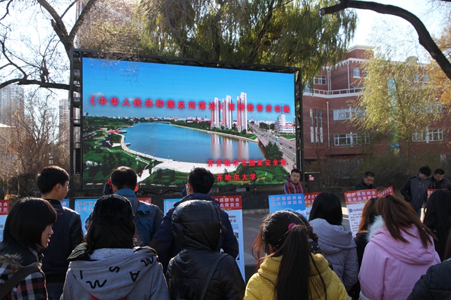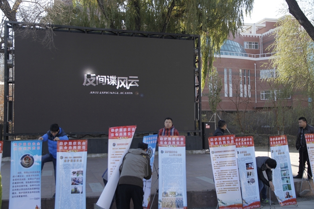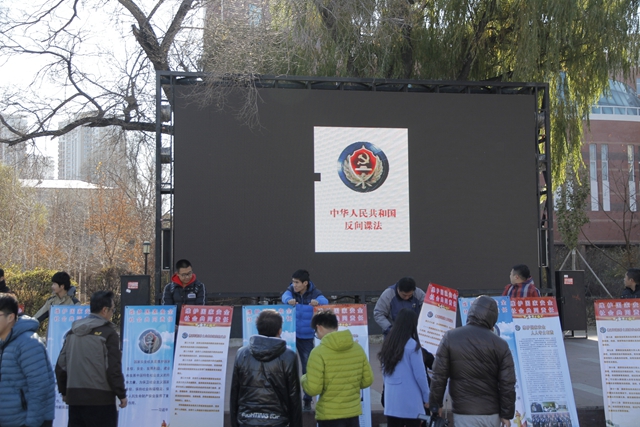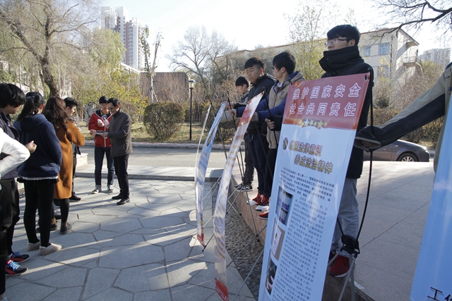 2015年11月1日是《反间谍法》颁布实施一周年。为切实做好《中华人民共和国反间谍法》的普法教育活动,进一步弘扬宪法精神,提高全民维护国家安全的自觉性,10月29日,beats365保卫处(武装部)与齐齐哈尔市国家安全局在三致广场携手开展了《反间谍法》宣传教育活动。保卫处处长吴刚,武装部政委、保卫处副处长付建成,保卫处副处长刘增发等保卫处工作人员及近千名师生参加了宣传教育活动。