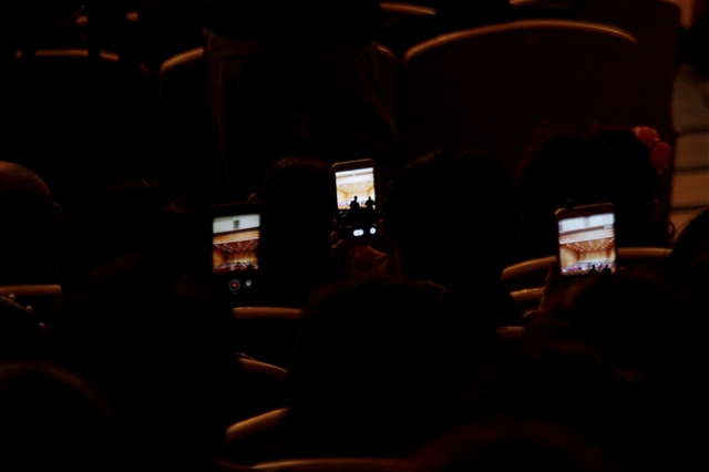 现场观众纷纷拿出手机拍摄下精彩的演出瞬间,通过微信、微博、QQ等等新媒体发到朋友圈“晒美好”,分享音乐庆典的幸福和喜悦。