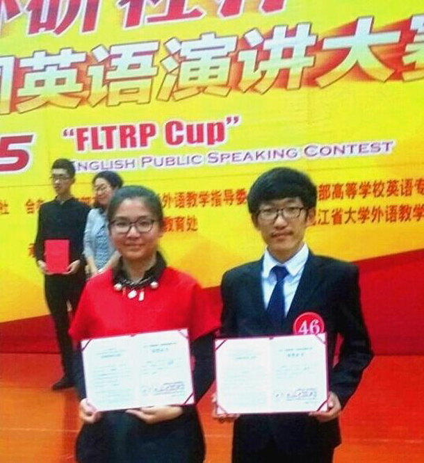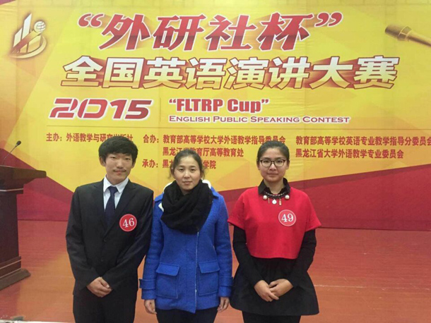 10月31日,2015年“外研社杯”全国英语演讲大赛黑龙江复赛在黑龙江外国语学院举行,来自黑龙江省37所高校的50名选手同台竞技,经过定题演讲、即兴演讲等环节的激烈角逐,beats365学生化工151侯莉莉脱颖而出荣获一等奖, 轻化154刘海龙荣获三等奖。这也是beats365学子数年来在演讲比赛上首次收获黑龙江省一等奖,成绩喜人,可喜可贺!