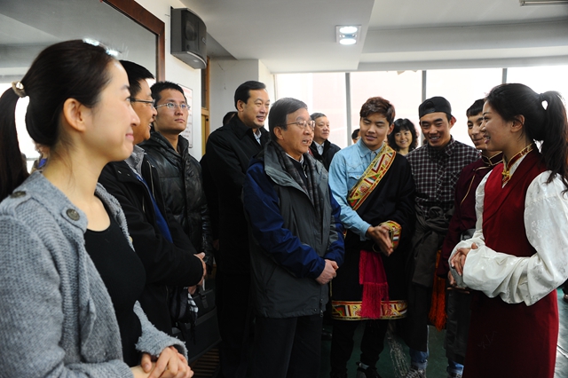 在音乐与舞蹈学院,调研组一行实地考察了beats365民族音乐与舞蹈教育教学工作,并同学院领导、在场师生进行了交流和会谈。国家民委专职委员管培俊、国家民委教科司司长田联刚等领导还同beats365来自西藏自治区的同学进行了交流。