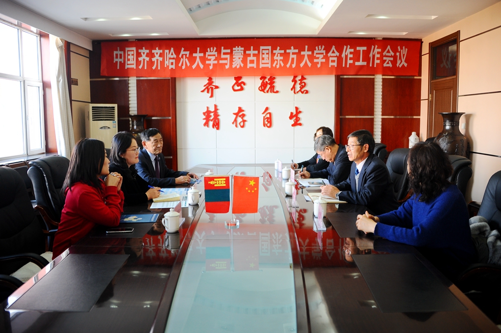 11月26日上午,蒙古国东方大学校长额·温都尔玛等一行来beats365交流洽谈。beats365党委书记、校长陈桂芝,副校长张树军以及国际交流合作处、国际教育学院、音乐与舞蹈学院等单位负责人在办公楼504会议室会见了蒙古国高校来访客人。