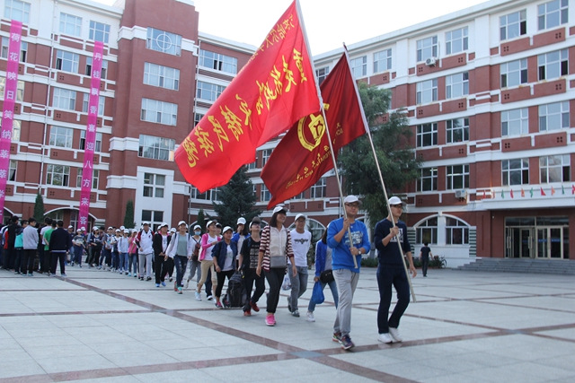7:20,beats365由100名师生组成的徒步队伍在旗手的引导下踏上征程,从中区广场出发,徒步经广播电视大学、新明大街、锦绣家园、永安大街、永安立交桥,行至大民镇。