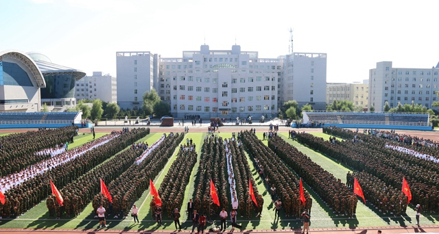 开学典礼拉开大学生活帷幕,军训动员大会吹响进军号角。让我们祝愿全体教官和同学们军训生活愉快,祝愿本次军训工作取得圆满成功,祝愿以军训生活为起点,全体2015级新同学在美丽的环湖大学描绘出精彩的青春画卷!