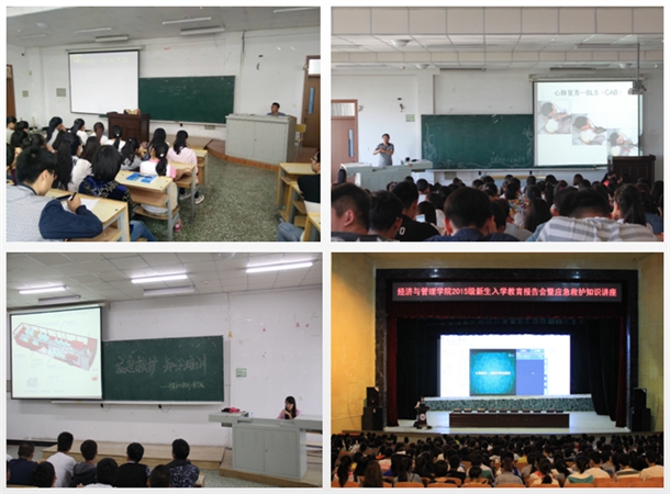 新学期伊始,学校将应急救护培训(4学时)纳入到新生入学教育中来,作为新生入学教育的一项重要内容对新生进行培训。在学校今年7月首批赴省红十字培训合格的应急救护师中选拔出了20名老师担任主讲,对全校20个学院,31个课堂进行了培训,全面覆盖近6000名2015级新生,共计培训124学时,培训工作圆满结束。