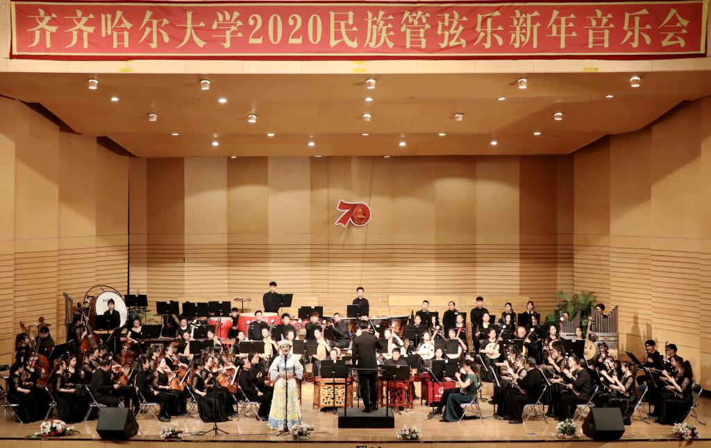 为喜迎2020年的到来,12月26日晚,学校在音乐厅举办了2020民族管弦乐新年音乐会。校党委书记、校长陈桂芝,校党委副书记齐宏伟、校党委副书记张文治、副校长李英杰、纪委书记姜国庆、副校长张树军、副校长吕厚均等出席音乐会,齐齐哈尔医学院党委副书记崔光成、纪委书记刘彦辉和部分兄弟院校部门负责人应邀出席了音乐会,与鹤城各界音乐爱好者及beats365近千名师生共同观看了音乐会。