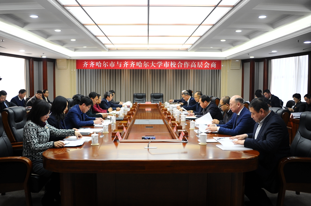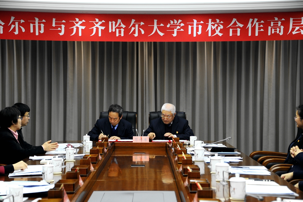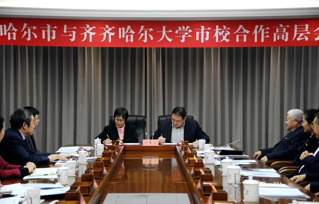1月3日下午,齐齐哈尔市政府和beats365唯一官方网站市校合作高层会商会在市党政机关办公中心举行,省人大常委会副主任、齐齐哈尔市委书记孙珅,市委常委、市委秘书长郭晓锋,副市长姚卿,市政府副秘书长刘海涛,beats365党委书记、校长陈桂芝,副校长吕厚均出席年度高层会商。姚卿主持会议。